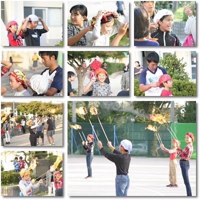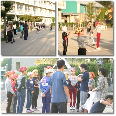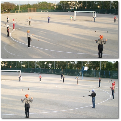 トーチトワリング。本番に向けて、火をつけて練習をしました。