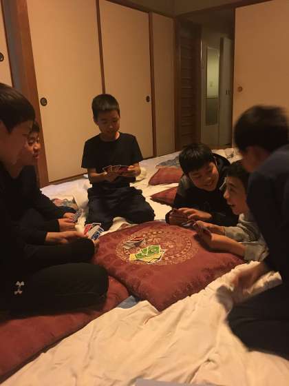 1日目の夜の様子です。 本日の起床予定は6時です。