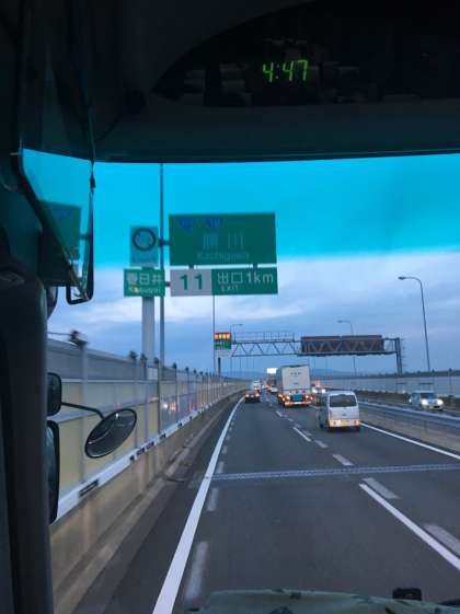 今、勝川インターをおりましたが、出口で渋滞しています。5時15分にお迎えをお願いします。よろしくお願いします。