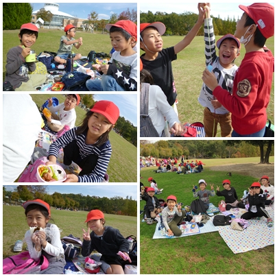 つづきです。みんなで仲良く楽しそうです。お母さんが作ってくれたお弁当、最高に美味しいよ〜!!なんて、みんなとっても幸せそうです。