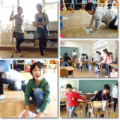 2年生が掃除をしています。 働いている姿はとてもステキです。