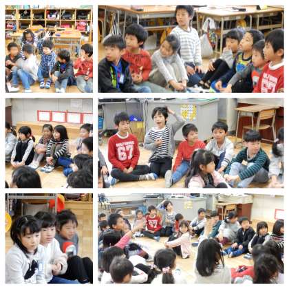 1組はお楽しみ会。白熱した展開のハンカチ落としでした。