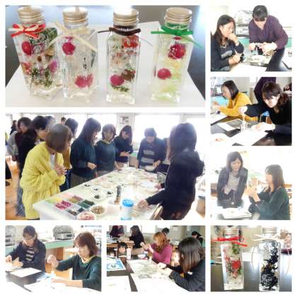今日は、ハーバリウムレッスンです。すてきな作品ができあがりました。