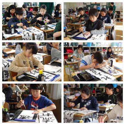 3組です。書き初めの練習中です。