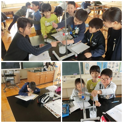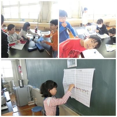 水の温度が氷を入れるとどの様に変化するのか記録をつけていました。