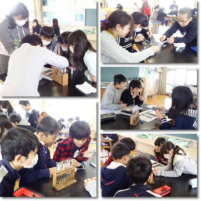 6年生です。実験をしていますね。