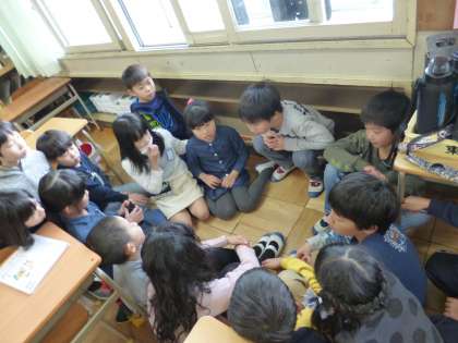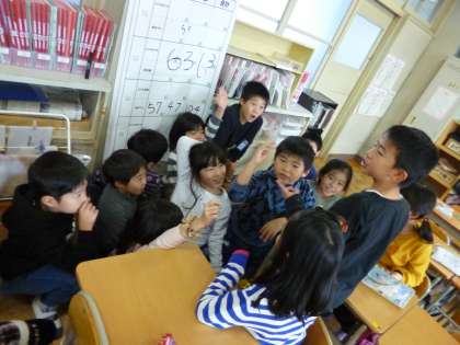 どのクラスも、2月の大縄大会に向けて練習に励んでいます。今日は、3分間で何回跳ぶか目標回数を決めました。チームで話し合いをしているところです。やる気満々です。