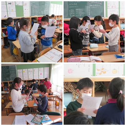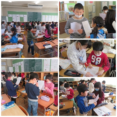 音声計算練習で、九九をランダムに言えるように練習をしています。30秒で速く正確にできるだけたくさん言えるように毎日頑張っています。記録を更新できると、喜びの声があがります。