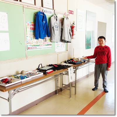 さて、本館(南館)1階のくつ箱前廊下に落とし物や忘れ物を並べました。持ち主がわからないものは残念ですが処分してしまいます。学校へお越しの際はぜひ一度ご確認ください。