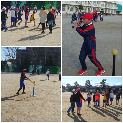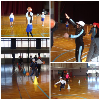 3組は体育館でバスケットボール 4組は大縄大会の練習とTボールでした。