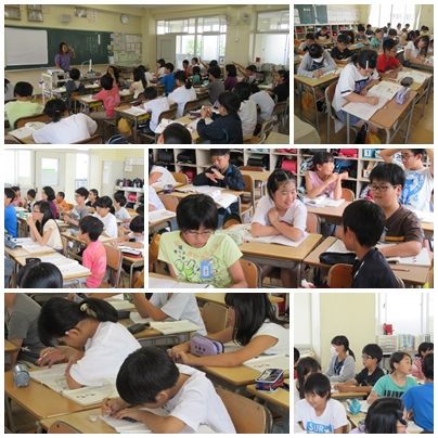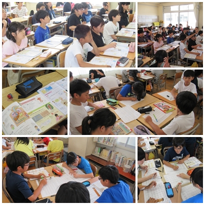 暑い日となりましたが、授業に集中してがんばっています。1組は理科「人の体のつくりとはたらき」、2組は国語「伝えにくいことを伝えるには」、3組は家庭科「調理実習の計画」、4組は体育「ベースボール型運動」に取り組んでいました。それぞれのクラスのチームワークが感じられる場面がたくさん見られました。