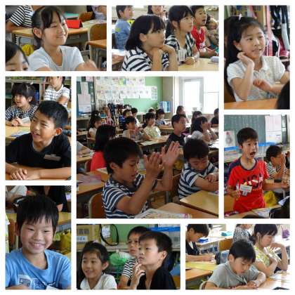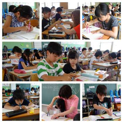 4組は算数。コンパスの使い方に悪戦苦闘中でした。