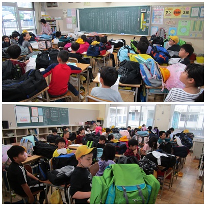 雨で登校は大変でしたが、教室では落ち着いて出発の準備をしています。