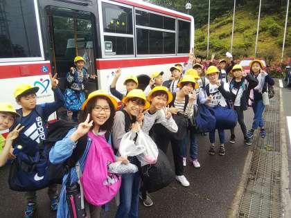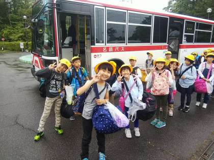雨がかなり小降りとなりました。少年自然の家到着です。