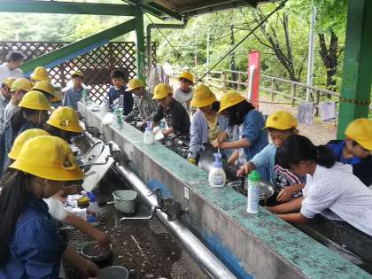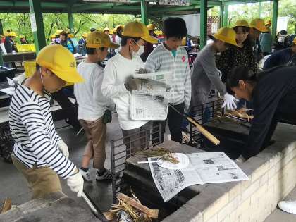 食器を洗い、炉を準備。お米をといで炊事開始。