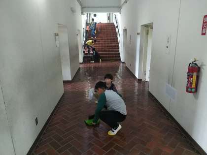 食事の後は、館内清掃です。来たときよりも美しくなるようがんばります。