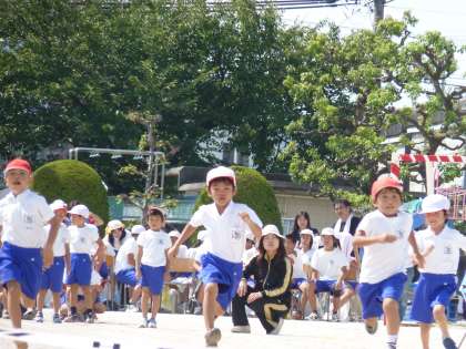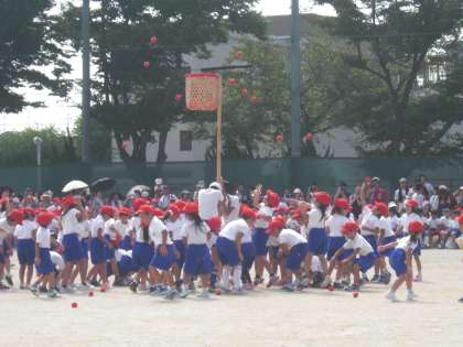 1年生の「かごいっぱいになあれ(玉入れ)」と「かけっこ」の様子です。