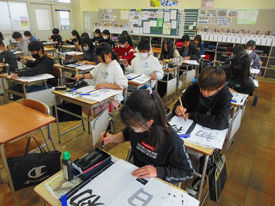 12/5 書道科の授業(6年生)