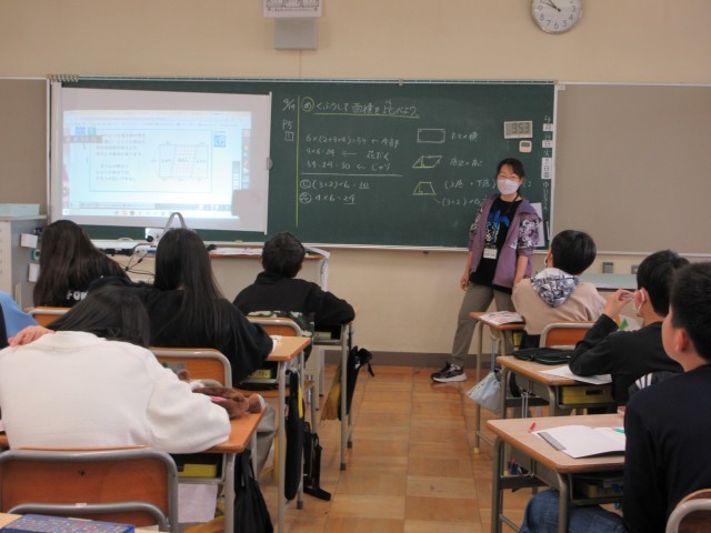 学び方やノートの書き方などの学習規律を確認しながら、花壇とじゃりの面積を比べる方法を考えました。
