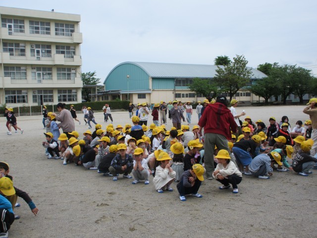 サイレンを聞いた子どもたち、一斉に運動場の中央に集まっていました。近くに先生がいない状況も考えられます。