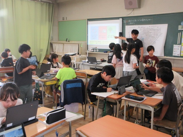 3年生から新しく始まった社会科の学習。 今日は、自分たちが住んでいるまちの「お気に入りの場所」を友達に紹介しました。