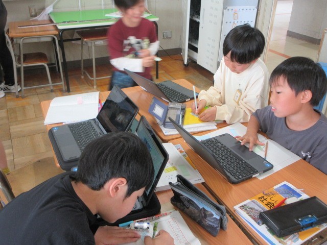 国語の時間には、Chromebookのスライドを使って自分の考えをまとめるような学習を展開していました。
