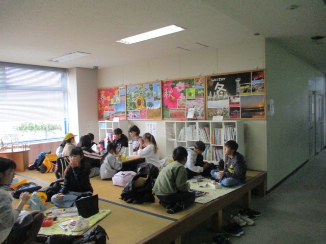 昼食は、班の友達とお弁当を見せ合い、嬉しそうに食べていました。昼食を終えた子どもたちは、しばふ広場で元気よく遊びました。