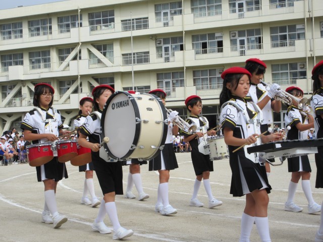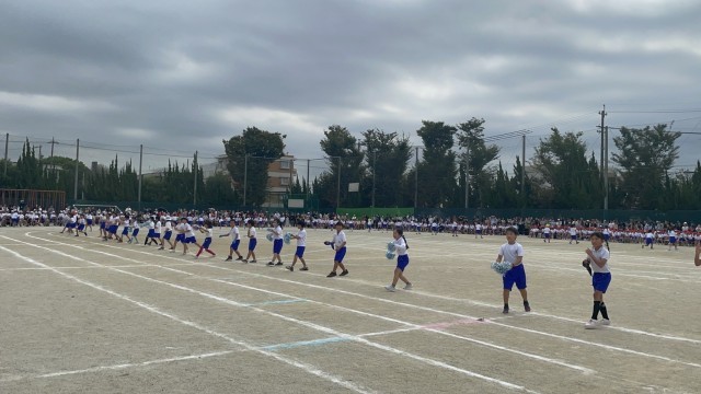 10月10日金曜日に令和7年度松山小学校スポーツフェスティバルが開催されました。さわやかな秋晴れとはいきませんでしたが、暑すぎず過ごしやすい天候に恵まれました。今年度のスポフェスは、音楽部による演奏から始まりました。重たい楽器を持ちながら、行進する姿は、とてもかっこよかったです。