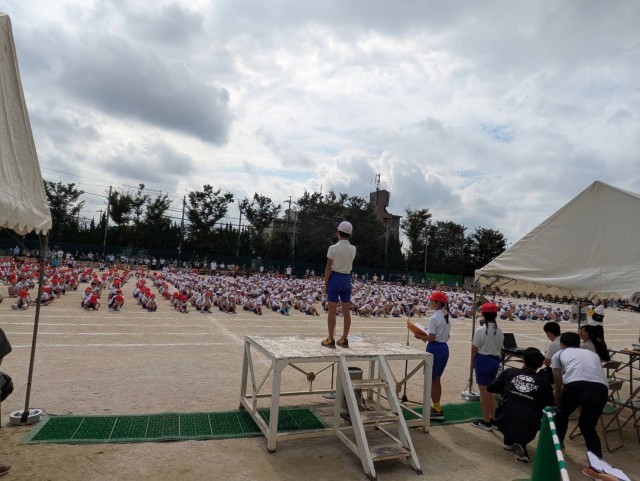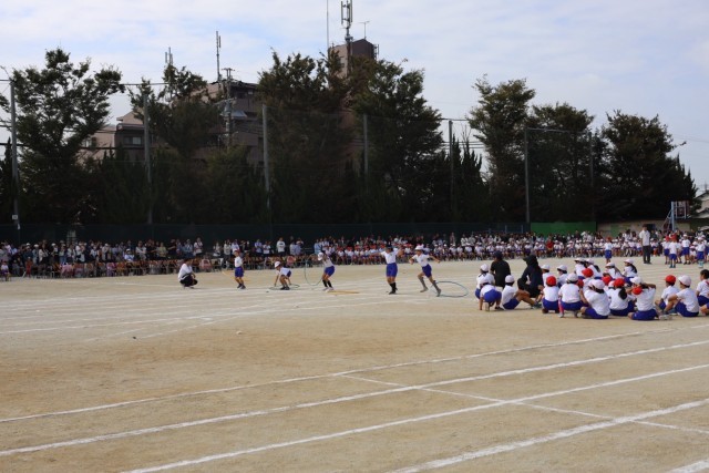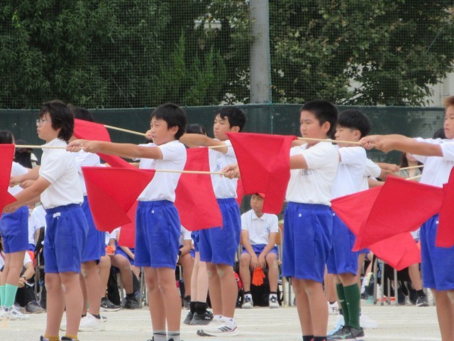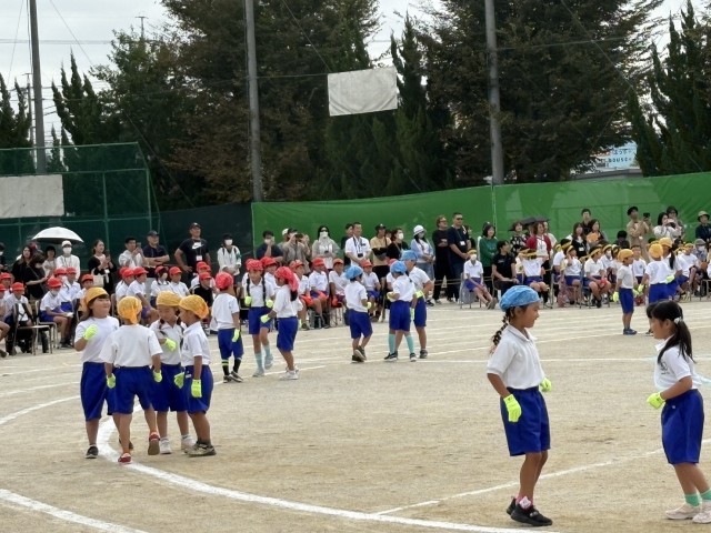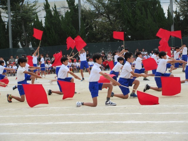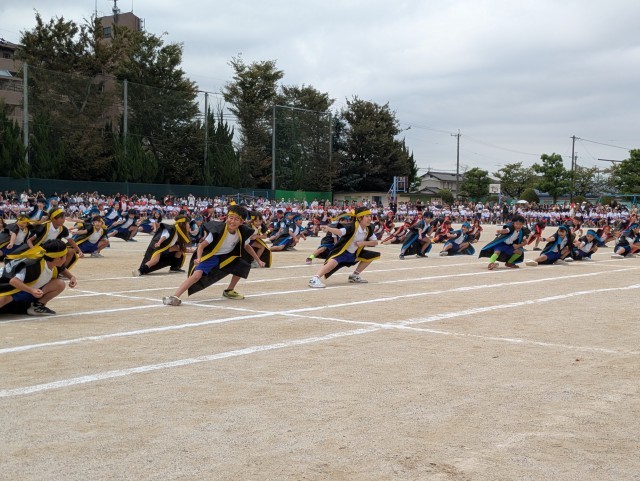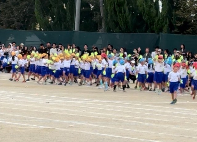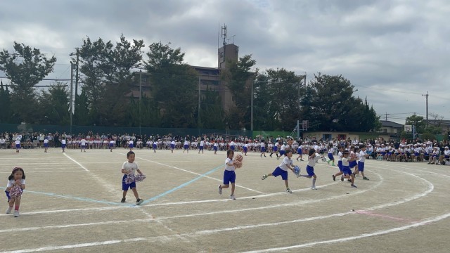 沢山の人の様子に少し緊張している様子でしたが、始まる前からワクワクしているのが伝わってきました。1年生は、ダンス「できっこないをやらなくちゃ」とリレー「ユーフォーにのって うちゅうへゴー!」の2つの演技を行いました。ダンスでは、クラス別の色違いのバンダナが印象的で、音楽に合わせて元気いっぱい力強く踊る姿を見て、とても感動しました!さらに笑顔を忘れずニコニコしている姿に成長を感じました。リレーでは、クラスのお友達が一生懸命走る姿に「がんばれー!」と声援を送る子供達のを声が響き渡り、クラスでの一体感が見られました。初めてのスポーツフェスティバル、がんばっている一年生の姿を沢山見ることができて、本当に感動しました。(PTA広報部) -