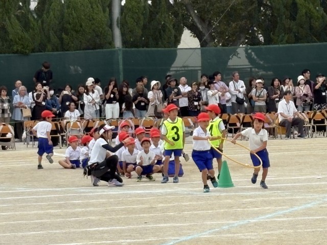 友達が走る姿に大きな声で応援する子どもたち、見ている親も応援に力が入りました。とてもかっこよかったです。
