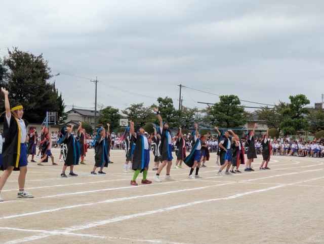 6年生は、クラス対抗リレーの「天下分け目の最終決戦!〜松山ヶ原の戦い〜」と、音遊の「未来へ」でした。