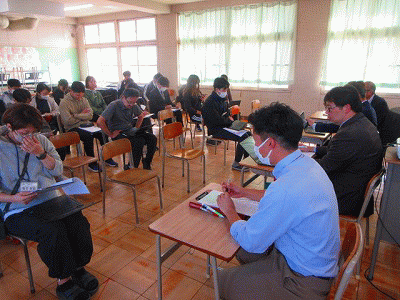 5時間目に、3年1組にて先生たちの授業研究会を行いました。