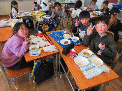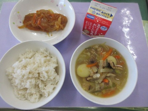 今日は 2年3組、たけのこ学級の教室にお邪魔しました。<本日のメニュー>