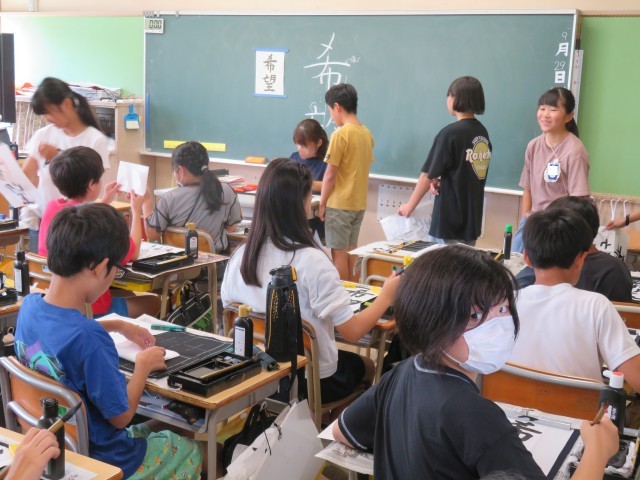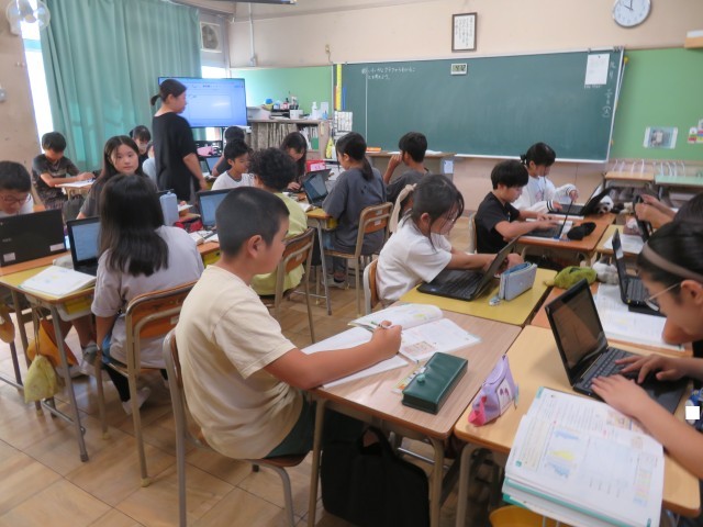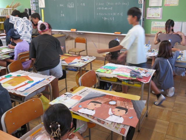 3組は図工で、絵の具を使って絵を仕上げていました。