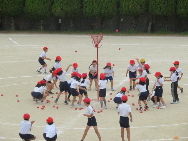 上手に並んで入場し、生き生きとダンスをしたり玉入れをしたりしていました。