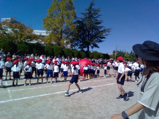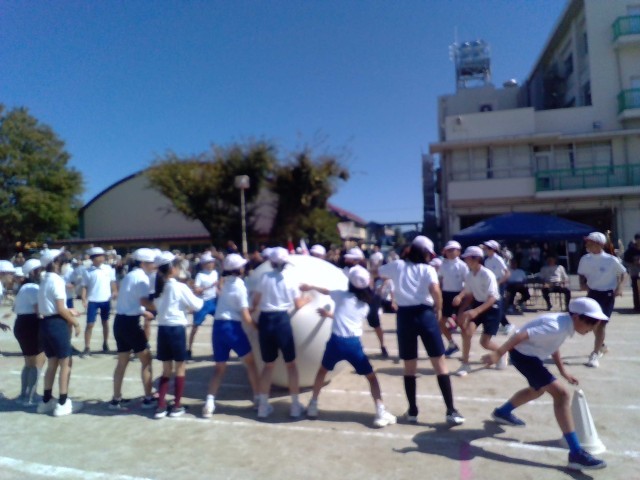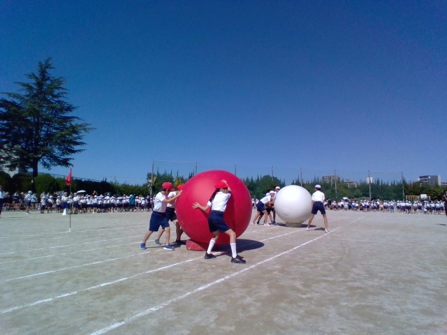 赤組も白組も、大玉をすばやく送ろうと一生懸命でした。