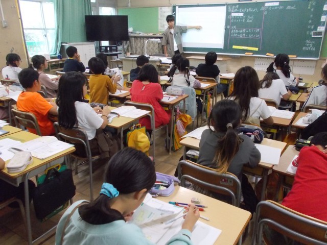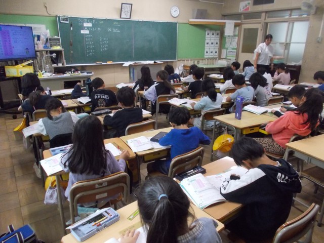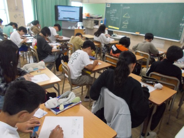三角形の辺の長さや角の大きさを測って、拡大図をかいていました。