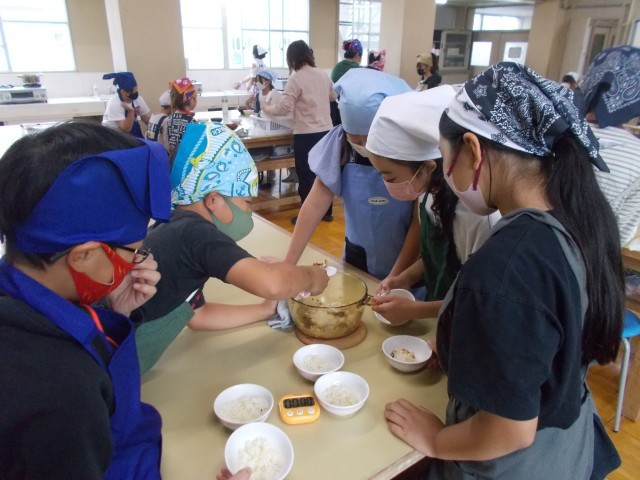 野外学習の野外炊爨の練習も兼ねて、ごはんとみそ汁を作る調理実習を行いました。