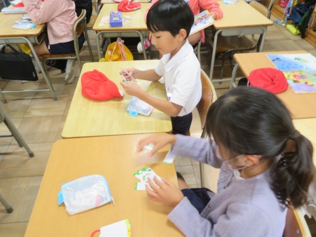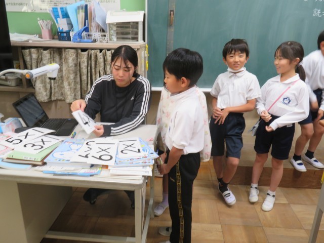 2・3組は算数です。2組は教科書の文章題に、3組は九九に取り組みました。