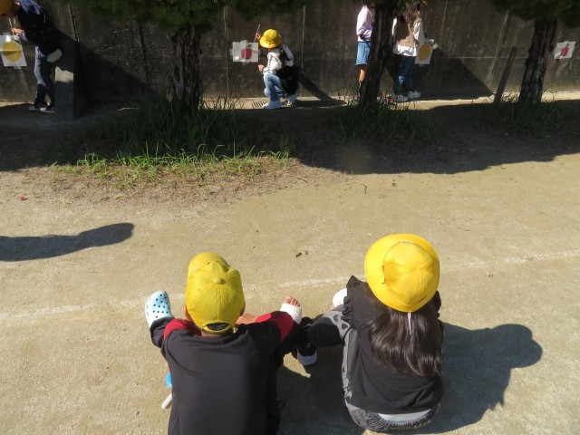 鏡で日光を反射させて温度計に当て、温度がどうなるかを調べています。