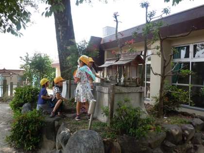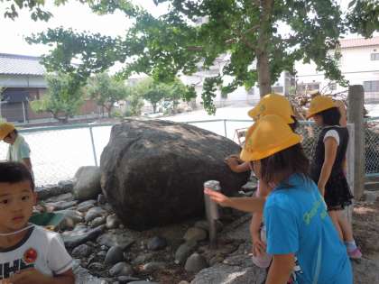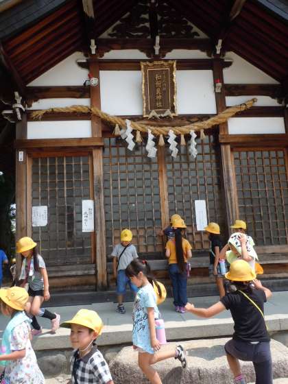 2年生 和爾良神社見学 公開日 2013/06/07 更新日 2013/06/07 トピックス 2年生が、和爾良神社の見学にいきました。 こんな声をひろいました。 ・ この神社毎日遊んでるよ ・ 神社の中(社殿)に太鼓がある〜 ・ あの石(夜泣き石)は、夜になると泣くんだって ・ この建物(神社)とあの建物(隣にある大光寺)とどっちが古いの? こんな素朴な声も・・・ ・ 校長先生何しにきたの? →はい、みんなが勉強しているところを見に来たんだよ。
