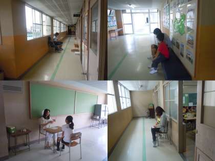 読書週間の朝読書の時間を利用して、教育相談をおこなっています。事前に子どもたちからアンケートをとった上で、一人一人と個別に相談をしています。困っていることや心配事などを、子どもたちのほうから話してもらえるように耳を傾けて担任が聞いています。場所は、全学級が一斉におこなうのでこのように廊下などのフリースペースを利用し配慮しながらおこなっています。
