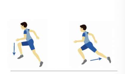 あしを後ろにけるのではなく、体の下にしぜんに下ろしていく感じで走るとよいのです。走るときは、ついあしを後ろにけって、その力で前に進もうとしてしまいます。しかし、これではあしが後ろにのこってしまい、そのあしを前にもってくる分のむだが生じます。忍者がぴたあっと下り坂をかけ下りていくようなイメージで走ると、体の動きがなくなり、すうっと進んでいきます。(教科書より抜粋)