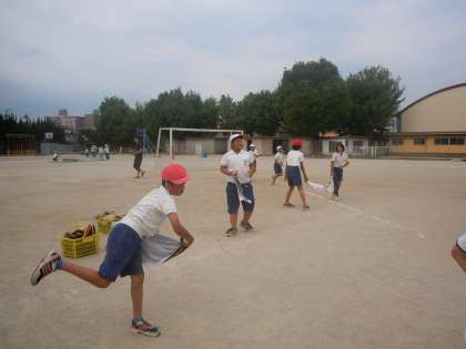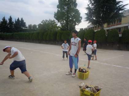 陸上部練習 ソフトボール投げ 公開日 2013/06/17 更新日 2013/06/17 トピックス 夏休みにある大会に向けて、陸上部の練習がはじまっています。金曜日は、種目別練習を重点的におこなう日です。今の段階での練習について順番に紹介していきます。 まずはじめは、ソフトボール投げの練習です。ボールの投げ方の基本について、指導を受けていました。タオルを使っての練習で、腕だけでなく腰から上の上半身の使い方を練習していました。