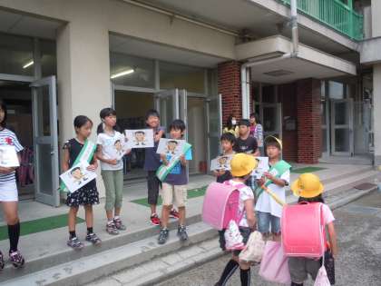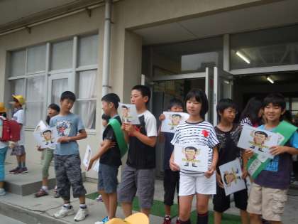 今週は、児童会役員と各学級の学級委員が一緒になってあいさつ運動を展開しています。「元気ですか」のポスターを登校してくる仲間達に見せながら元気よくあいさつをしています。