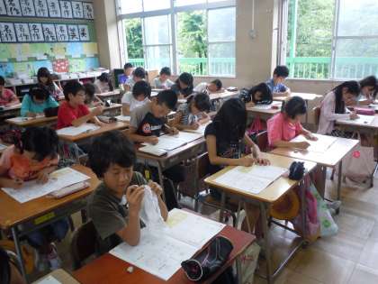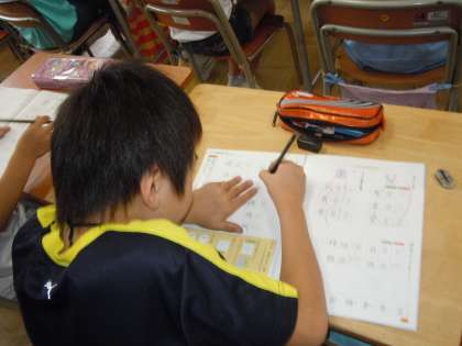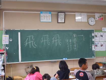 4年1組 書写 公開日 2013/06/24 更新日 2013/06/24 トピックス 「飛」という漢字、画数が多く、字の形、筆順等、子どもたちにとってはいくつものハードルを越えていかなければいけない字です。これは、書写の授業ですので、美しく整った字が書けるように練習を重ねています。