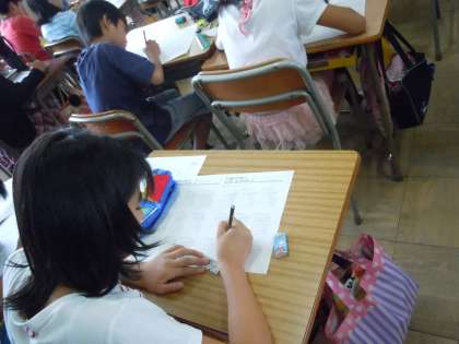 5年3組 算数 公開日 2013/06/24 更新日 2013/06/24 トピックス 小数のかけ算・小数のわり算の計算プリントを何枚もやっていました。今週は基礎学力テストがあります。それに向けての習熟です。担任ともう一人の教師が、個別に支援をしています。