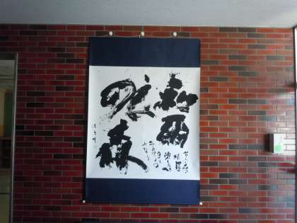 「かにらの森」の書を玄関に掲示しました 公開日 2013/07/01 更新日 2013/07/01 トピックス 北館1階の玄関に、先日朝会で紹介した原田凍谷先生書の「かにらの森」を掲示しました。個人懇談会で来校される折に、ぜひ一度ご覧いただけると幸いです。