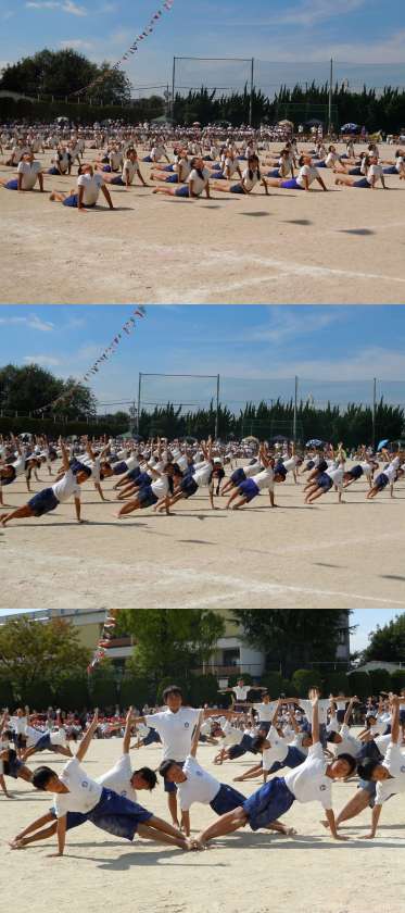 高学年による組み立て体操は、毎年楽しみにして参観してくださる方が多いと思います。今年の組み立て体操のテーマは「ひとつ」