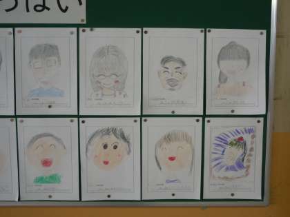 先週貼っていた絵ですが、中にある先生の似顔絵が2枚あります。どの先生の絵かよく見ると分かりますよ。とてもすてきな笑顔です。